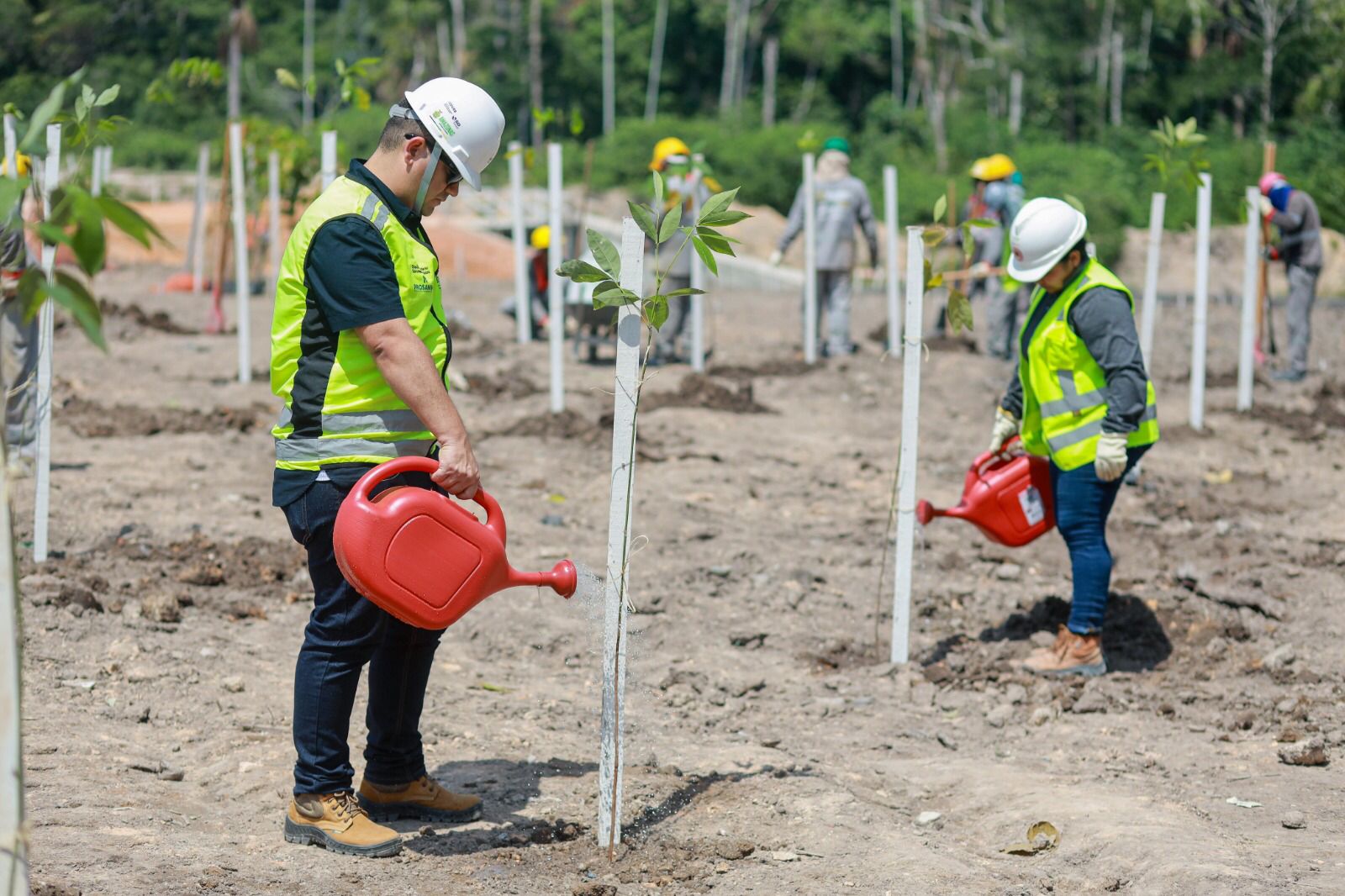 Reflorestamento urbano e monitoramento ambiental via sensores.