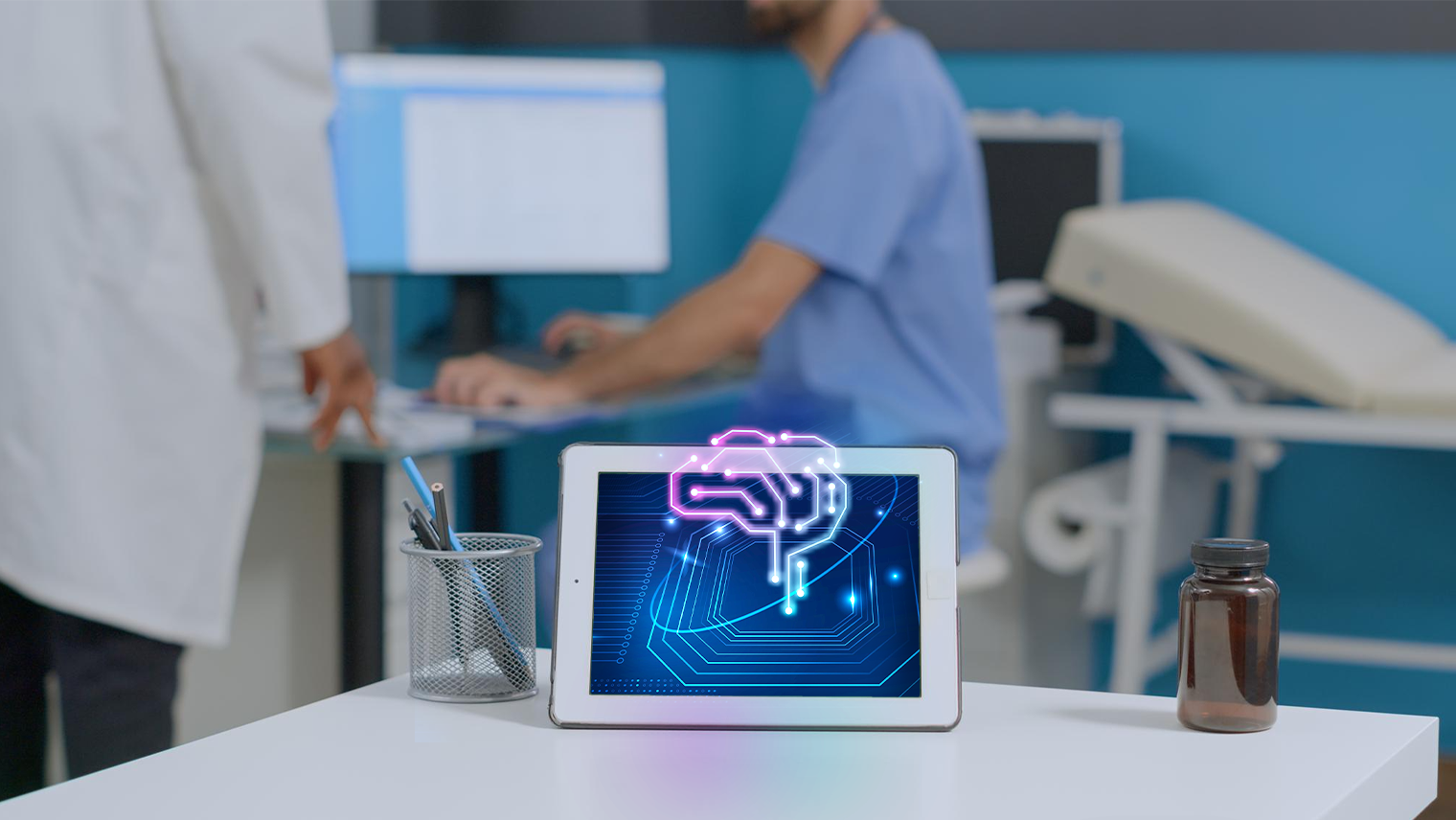 Aplicação de inteligência artificial em filas de atendimento, triagem de saúde e gestão administrativa.